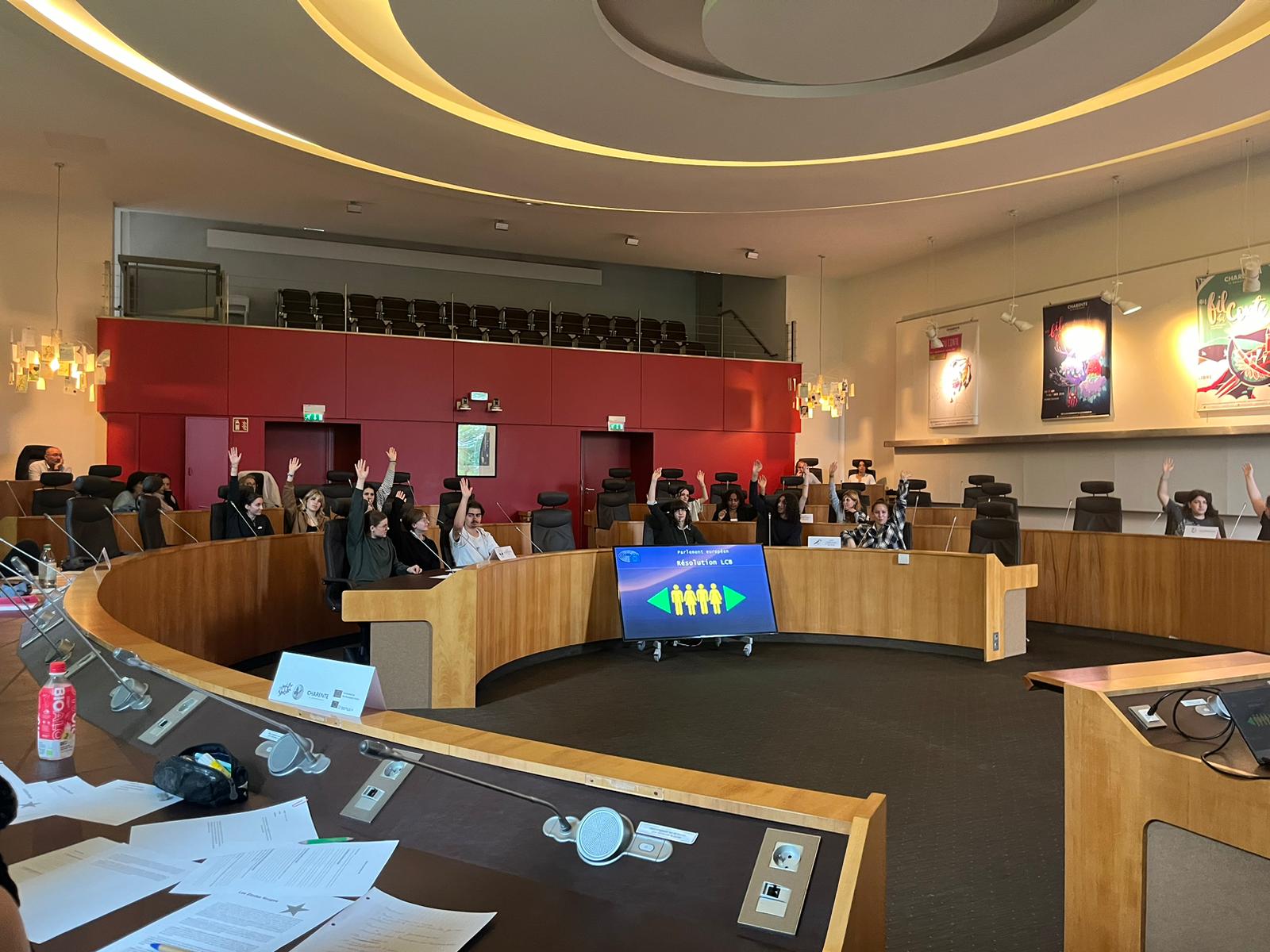 Pour garantir l’ambiance d’un vrai débat politique, nos eurodéputés d’un jour ont pu tenir leur séance plénière dans l’hémicycle de Grand Angoulême le 21 mai et au Conseil départemental de la Charente le 28 mai.